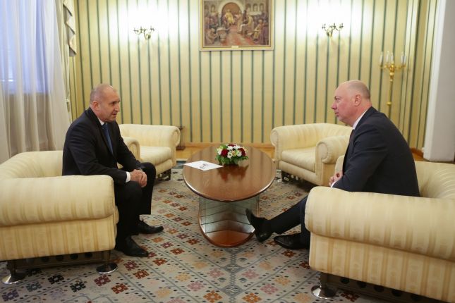 Президентът Румен Радев проведе среща с председателя на 49-ото Народно събрание Росен Желязков, чийто пост е сред посочените в чл. 99, ал. 5 от Конституцията във връзка с процедурата по назначаване на служебен министър-председател.