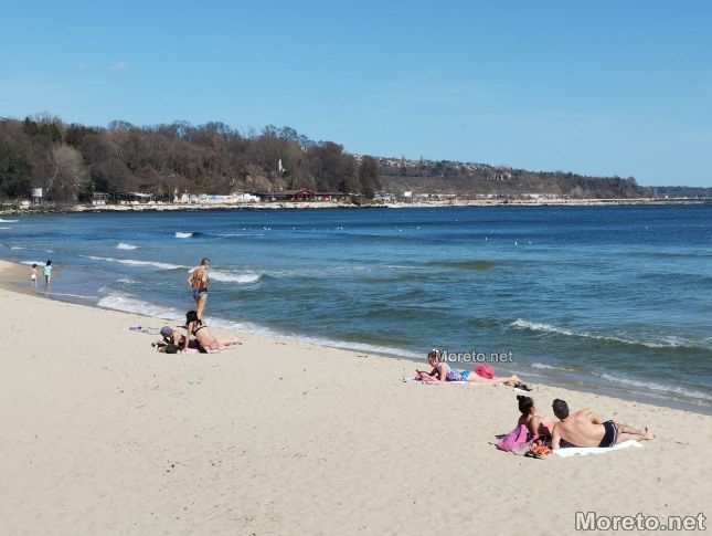 В петъчния следобед във Варна вече се радват на първия плаж по бански за годината, предаде репортер на Moreto.net