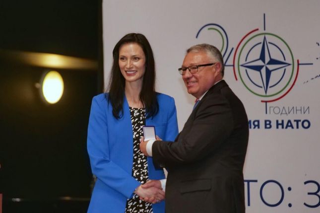 Вицепремиерът връчи юбилейни медали, изработени по повод годишнината, за особени заслуги за приемането на страната ни в НАТО на Петър Стоянов, президент на Република България (1997-2002); д-р Соломон Паси, министър на външните работи (2001-2005); Посланик Любомир Иванов, първи представител на България в НАТО; доц. Велизар Шаламанов, председател на Надзорния борд на Агенцията за комуникации и информация на НАТО (2019-2021) и ген. Стефан Димитров, почетен председател на Съюза на офицерите от Резерва “Атлантик”.
