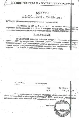 От МВР прилагат и копие от заповедта за назначаване на съпругата на Божанов структурите на ведомството.