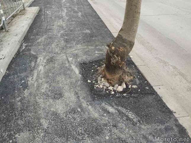 Има такива примери за тротоари, чиято настилка сякаш свършва изведнъж като следва чакъл и пясък. Има тротоарни плочки, които по време на ремонтите са премахнати и след това наредени отново, но без да бъдат залепени.