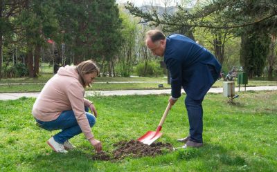 Засадиха 50 млади фиданки в двора на варненски университет