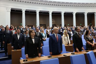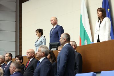 След това в пленарната зала прозвучаха химните на Република България и на Европейския съюз. На клетвата присъстваха президентът Румен Радев и вицепрезидентът Илияна Йотова.