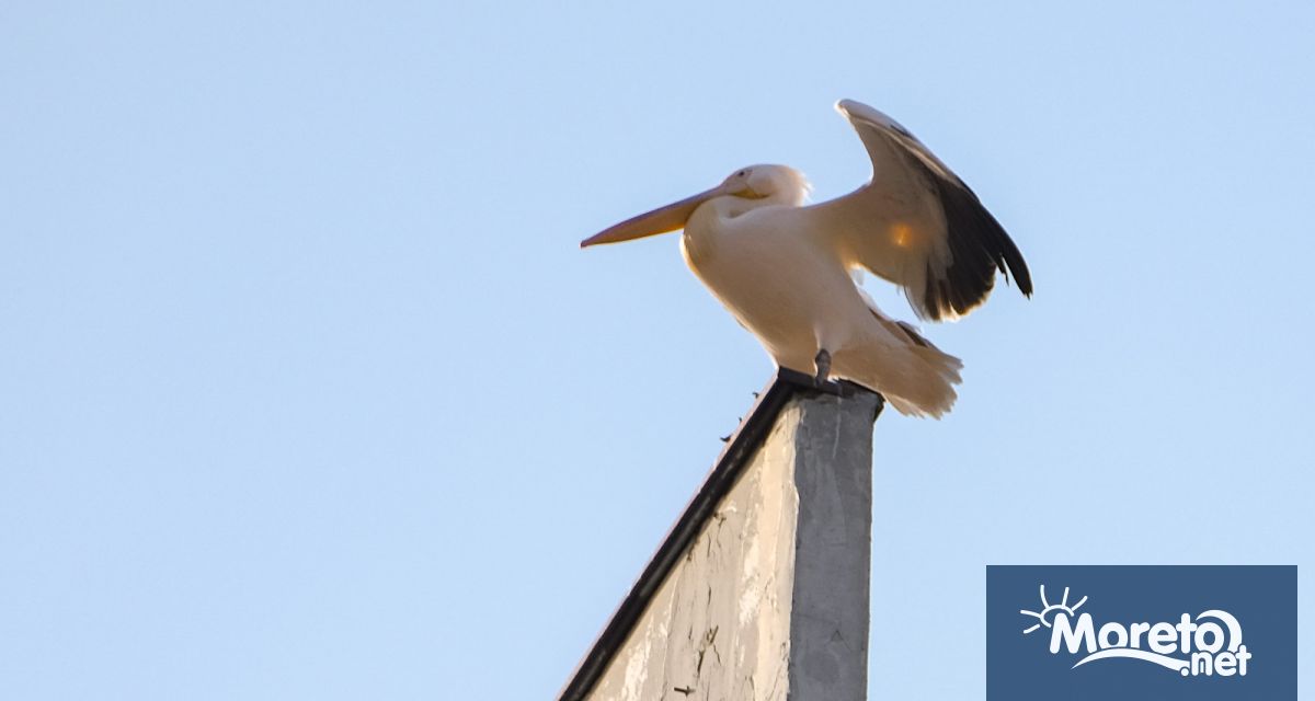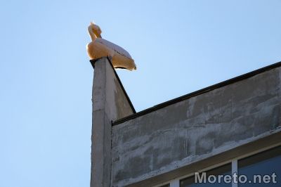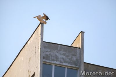 Пеликанът Стойчо се премести върху покрива на 16-етажен жилищен блок (снимки)