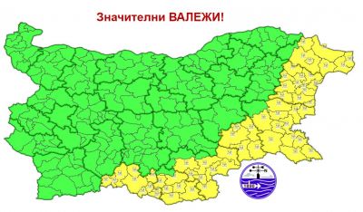 За област Варна е обявен жълт код за значителни валежи от дъжд.