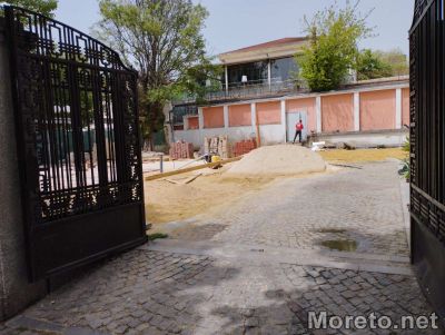 Клинкерни павета поставят работници в двора на 100-годишния паметник на културата на бул. „Сливница“ 20, видя репортер на Moreto.net.