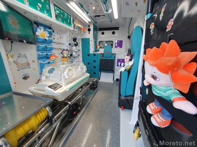 Детската линейка е оборудвана по най-високи стандарти и с най-модерните апаратури. Оборудването включва и специализиран неонатален японски инкубатор (кувьоз) от най-ново поколение пригоден на специална транспортна количка в помощ на най-малките недоносени бебета и тяхната трудна борба.