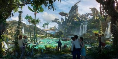 Публикуваното концептуално изкуство за възможна земя на Аватар показва пространство, подобно на Пандора в Животинското царство на Дисни във Флорида, но с гости на лодки в средата на открито езеро, изглед, напомнящ за втория филм от франчайза, „Пътят на водата“.