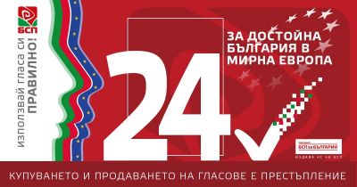 Изпратено от Пресцентър БСП Избори за членове на Европейски парламент и за Народно събрание, 09 юни 2024 г. Купуването и продаването на гласове е престъпление