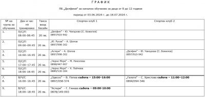 От 27 май, понеделник, започва записването за начално обучение по плуване за деца на възраст от 8 до 12 години. Тренировките се провеждат в плувен басейн „Делфини“.