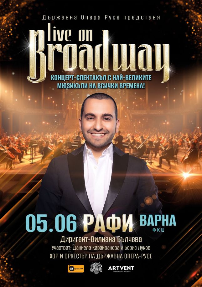 "LIVE ON BROADWAY" тръгва на турне в страната след няколко напълно разпродадени концерта. Събитието ще бъде представено във Варна на 5-ти юни от 20.00 часа във Фестивален и Конгресен Център - Варна.