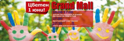 Най-големият търговски център във Варна Grand Mall по традиция подарява пъстра програма на децата на морската столица на 1 юни. Приказни герои ще раздават лакомства и балони, лесно ще ги откриете по изумителните вълшебни костюми. Ще разпознаете в техните лица любими актьори от Държавен куклен театър Варна, които са избрали празника в Grand Mall, за да направят премиерно представяне на новите си сценични облекла.
