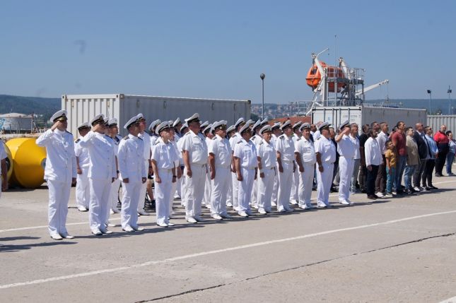 Командирът на дивизион кораби със спомагателно назначение капитан І ранг Калин Караколев благодари на офицерите, старшините и матросите, които служат на кораба, за труда, желанието и стремежа за овладяване на сложната техника и връчи награди на заслужилите.