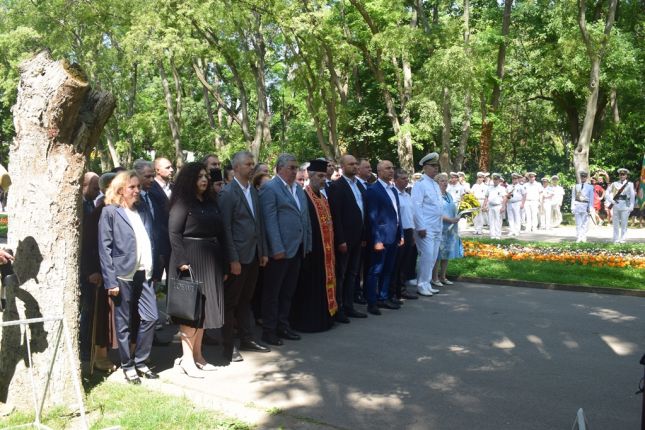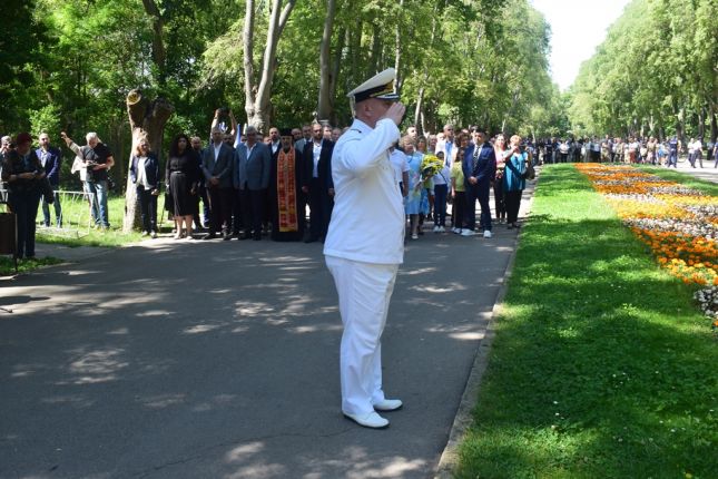 В ритуала пред паметника на Христо Ботев в Морската градина на Варна участваха Представителният духов оркестър на Военноморските сили, почетен караул от Военноморска база Варна и венценосци от военно формирование 38010.