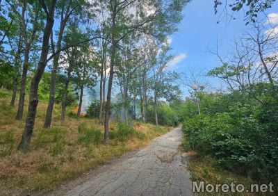Пожар гори в парка под паметника на Почивка, видя репортер на Moreto.net.