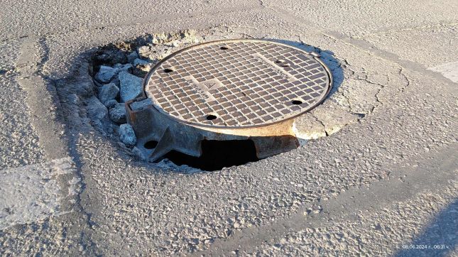 Пропадаща шахта на пътно платно във варненския квартал "Бриз" крие риск от инциденти за преминаващите автомобили. За това сигнализира читател на Moreto.net.