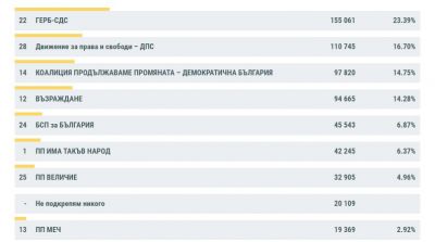 ПП-ДБ е с подкрепа от 14,75%, а Възраждане печели 14,29%