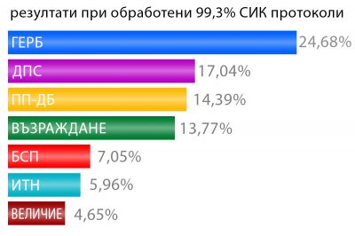 Ясни са резултатите при 99,3% обработени протоколи