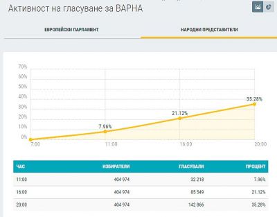 Във Варненска област избирателната активност за НС е била 35.28%, в 23-ти МИР в София за Народно събрание са гласували 41,52% от избирателите, а за Европейски парламент - 42,07%.