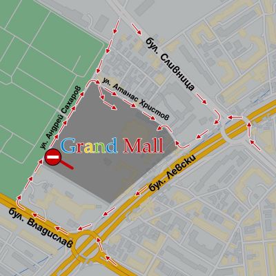 Отворени за моторни превозни средства остават двата Северни входа на Grand Mall от ул. “Андрей Сахаров” и ул. “Атанас Христов” - в посока Техникумите.
