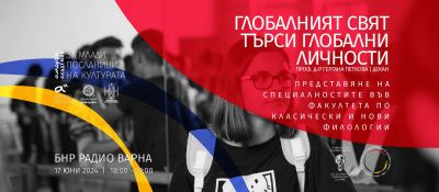 Днес, 17 юни, от 18.00 ч. в Арт салона на БНР Радио Варна ще се проведе среща-разговор с декана на Факултета по класически и нови филологии на Софийски университет „Св. Климент Охридски“. Проф. д-р Гергана Петкова ще представи специалностите на факултета и ще говори за традиционно високия интерес на българите към езиците и културите на света. Във Варна гостува по покана на „Аморфа академия за млади посланици на културата“ – 2024 на варненската Младежка фондация „Аморфа“ и като лектор в направление „Европа-Азия: Книги – Япония“.
