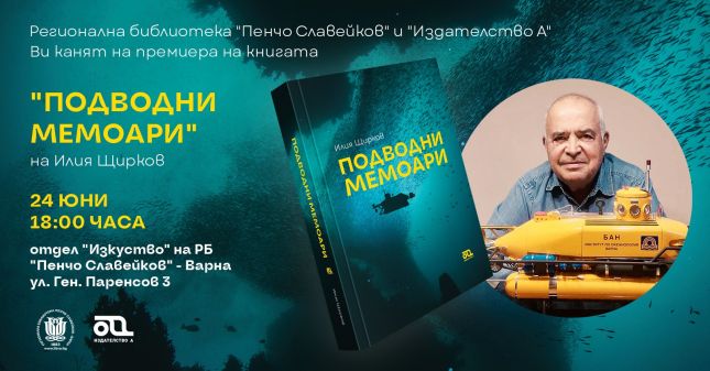 Днес, 24 юни, от 18.00 ч. Регионална библиотека „Пенчо Славейков“ ви кани на премиерата на книгата на инж. д-р Илия Щирков „Подводни мемоари“, която разказва за премеждията и триумфите на единствената родна изследователска мини-подводница.
