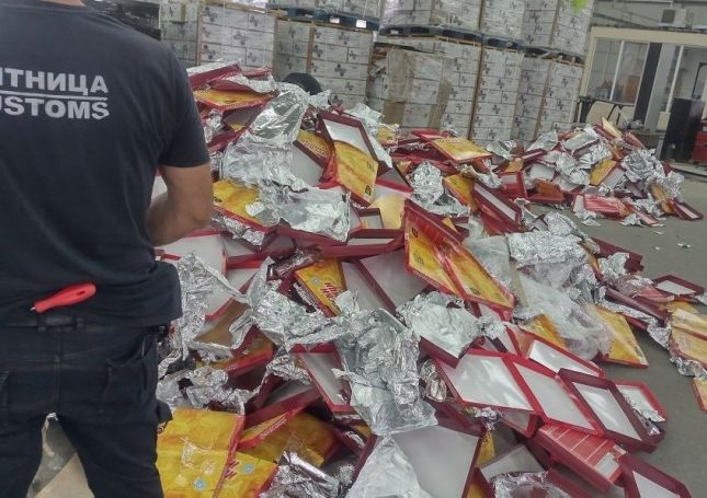 22 хил. кутии цигари, укрити в кутии за баница, откриха митничари