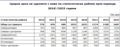 През 2023 година средната цена на сделките с ниви в България достига 1 607 лв. за един декар, което е ръст от 12.5% спрямо 2022 година.