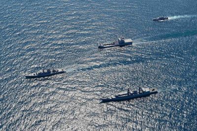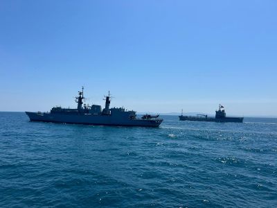 В ход е провеждане на операция за осигуряване свободата на корабоплаването и провеждане на възпиращи действия по море по отношение на трафика на хора и разпространението на оръжия за масово унищожение.