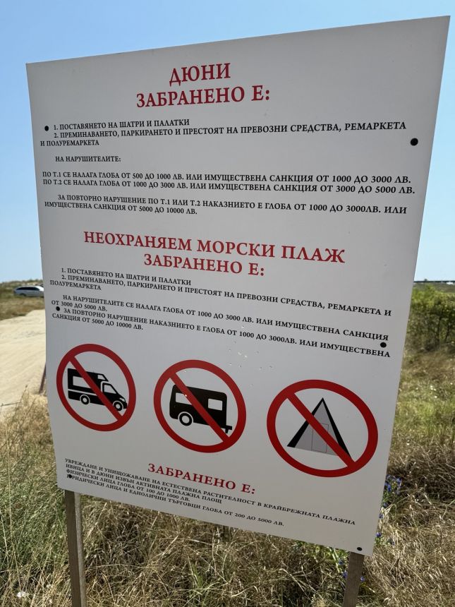 През целия туристически сезон ще продължат регулярните проверки за спазване на забраните, въведени със заповедите за обявяване на защитените зони, и по-конкретно за увреждане и унищожаване на естествената растителност в крайбрежната плажна ивица и в дюни извън активната плажна площ.
