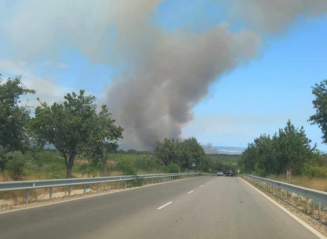 Пожарът е обхванал храсти и дървета от двете страни на магистралата и се е разпрострял в участъка между пътните възли на Слънчево и Летище Варна. Видимостта в района е почти нулева.