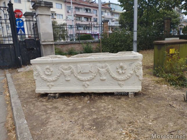 Припомняме, че вчера, докато е на почивка в морската столица, бивш служител на реда подал сигнал в Пето Районно управление-Варна за забелязан от него безнадзорен на вид античен саркофаг в курорта край Варна. Специалисти от Археологическия музей във Варна и представител на регионалната структура на ГД “Инспекторат за опазване на културното наследство“ към Министерство на културата, заявиха, че при първоначалния оглед, културната ценност – саркофаг без капак, е от римската епоха, с богата релефна украса, вероятно от периода II- III век сл. Хр., с приблизителни размери 90 х 235 х 75 см. Четирите му страни са украсени с характерни релефни стилизирани орнаменти - гирлянди с висящи гроздове, животински глави, розети, лабрис /двуостра брадва/ и др.