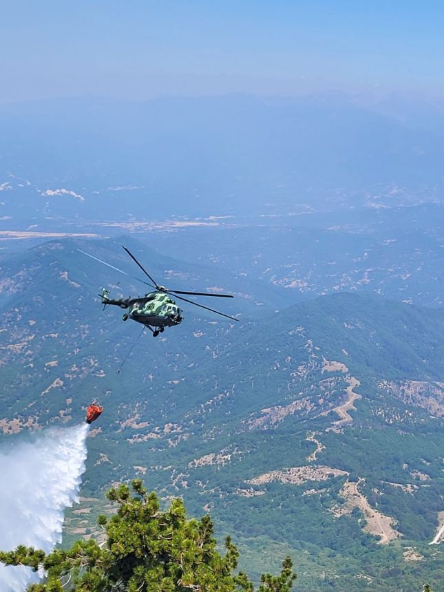 Вчера, 28 юли, група от 22 военнослужещи с 5 единици техника от 3-ти механизиран батальон на 3-то бригадно командване - Благоевград, под ръководството на старши лейтенант Иван Дуков, за 11-и пореден ден гасиха големия горски пожар на българо-гръцката граница в планината Славянка. В действията вчера участва и хеликоптер „Ми-17“, който през деня извърши 11 водохвърляния за гасене на огъня.