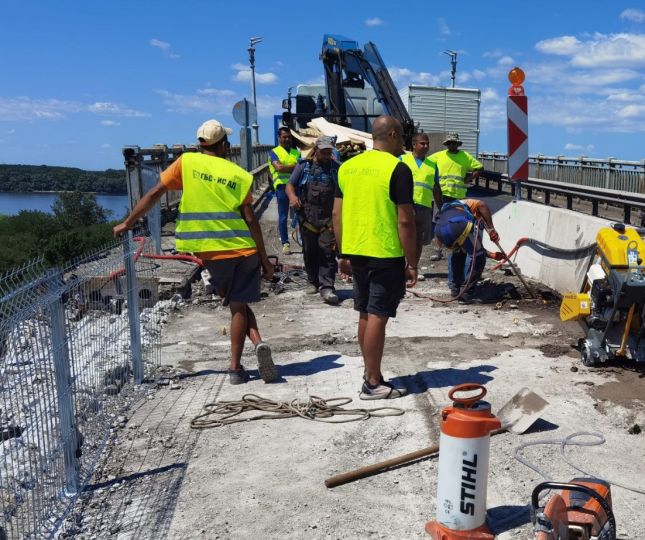Сред дейностите заложени за изпълнение на основния ремонт на Дунав мост в следващите дни са реставрация на демонтирания съществуващ пешеходен парапет и демонтаж на съществуващи и монтаж на нови стоманобетонни панели.