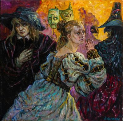 Произведенията живопис - масло върху платно - откриват дългогодишните извори на вдъхновение за художничката - музикално-сценичните изкуства и свързаните с тях драматични сюжети, митологията, красотата на природата и различните състояния на човешкото лице - от невинността на детския образ до тъгата, носена от възрастта. Лора Маринова в последните години срещна публиката и със свои литературни творби - книга, посветена на нейния именит баща - художника Янко Маринов, основател и първи директор на Варненската художествена галерия, както и две стихосбирки. Поезия, рисуване и музика изграждат лиричния слог на нейния деликатен художествен изказ, който откриваме и в тази изложба.