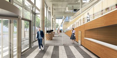 Първият надземен етаж е предвиден за детски читални и интерактивни зони, кътове за игра, зони за групови занимания и открити уроци, както и общообразователна мултимедия. На втория етаж ще бъде разположен младежкият отдел на библиотеката, където интериорът е съобразен с нуждите и акцентите в съвременната младежка култура.