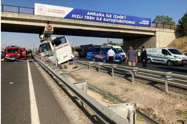 Телевизионният канал TRT съобщава, че автобусът се е блъснал в колона под мост.