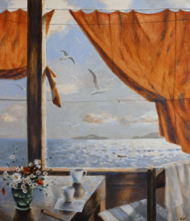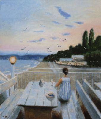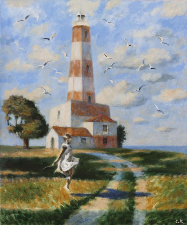 И в настоящата колекция от картини ще се насладим на едно перфектно лятно настроение, уловено и пресъздадено по вълшебен начин с четка от Светла Косева. Тук е красивата непозната, седнала самотна в крайбрежното кафене, загледана в далечния бряг, може би очакваща някого, в компанията на чаша „Вино на свечеряване“. Тук е и детето, препускащо с колелото през пръските морска пяна, „пътуващо с гларуси“ някъде далеч, далеч. Ето го и малкото момиченце, тичащо с развявани от вятъра пшеничени коси, към простора с чайките, реещи се в небето и към „Фарът, който още си е там“. И може би много от нас ще открият себе си в малката история за двойката, вървяща подръка в светлината на разсънващия се град, по тихия, празен булевард. Пристигнали току що, вдъхващи с наслада морския въздух, зареяли поглед в небето и в чайките, разперили криле, понесени от вятъра, те като че ли с почуда се питат „Били ли сме тук“.