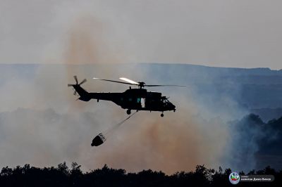 Машината, снабдена с подвесна система за гасенe на пожари от въздуха тип „bambi bucket“ е излетяла от авиобаза Крумово в 14.50 ч., съобщават от Министерството на отбраната.
