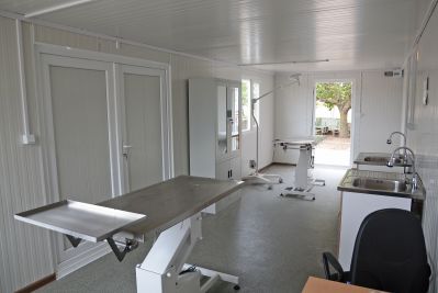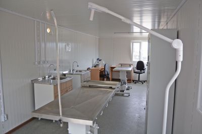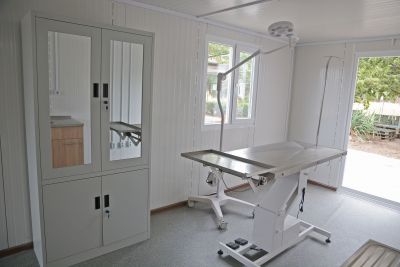 Във фургона са обособени операционна и манипулационна. Разположени са и две операционни маси с хидравлични механизми, операционна лампа и дигитален микроскоп с вградена камера, шкаф за съхранение на лекарства и 2 мивки. В най-кратки срокове се очаква да пристигне най-важната за лечението на животните апаратура - два апарата за хематологичен и биохимичен анализ. Това е изключително важна техника, която не само е жизненоважна за кучетата в приюта, но и гарантира бързината и високото качество на всички ветеринарномедицински дейности и процедури, подчерта директорът на приюта д-р Стоимен Стоименов. Във фургонът ще бъде поставен и климатик, който да осигури комфорт за животните, допълни той.