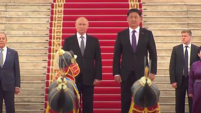 Той беше посрещнат от лидера на Монголия на пищна церемония в столицата на азиатската държава Улан Батор във вторник.