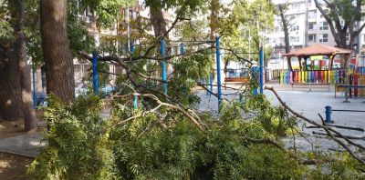 Огромен клон падна върху градинка с детска площадка във Варна (снимки)