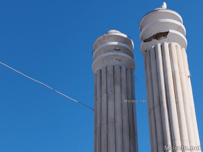 След случилото се мястото е оградено с ограничителни ленти, видя репортер на Moreto.net. Има множество пукнатини по колоните и отчупено парче от една от по-вътрешните.