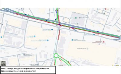 3. Етап 3: по бул. Владислав Варненчик – северно платно (движение двупосочно в южно платно) - срок: от 22.11.2024 до 8.12 2024 г.