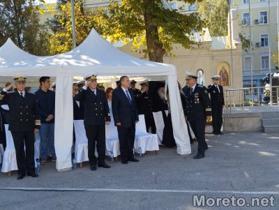 Новият началник прие флага на ВВМУ, както и флотската сабя, която е символ на училището. Прозвуча химнът на учебното заведение, след което бе връчен и личният флаг на началника на Морско училище.