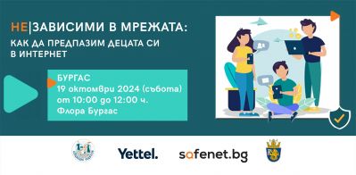 Безопасното използване на интернет и защитата на децата в онлайн пространството са сред темите на фокус в отворената среща с родители, организирана от Центъра за безопасен интернет (Safenet) и Асоциация Родители с подкрепата на Yettel. Събитието ще се проведе на 19 октомври (събота) от 10 часа в Експозиционен център Флора Бургас със съдействието на Община Бургас. Основната му цел е да запознае родителите с рисковете за децата в интернет и да им предостави практични съвети и създаване на здравословни дигитални навици у подрастващите. Достъпът е отворен за всички, без необходимост от предварителна регистрация.