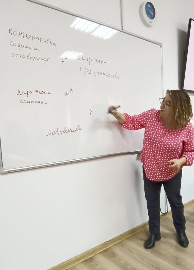 Екипът обучители и ментори на БАСП: Весела Панова, Диана Настева и Бистра Бончева запозна и над 120 ученика и студента, представители на бизнеса със същността на социалното предприемачество.