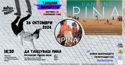 Любителите на танцовите филми ще получат своя момент с прожекцията на „Да танцуваш Пина”. (26-ти октомври, 14:30ч., NICOTEA – складза култура). Филмът проследява пътя на два впечатляващи танцови проекта, свидетелстващи как младо поколение танцьори от цял свят преоткрива хореографията на Пина Бауш: балетната трупа на Semperoper в Дрезден репетира танцовата опера на Пина „Ифигения в Таврида“, а танцьори от цяла Африка репетират балета на Пина „Le Sacre du Printemps“ в École des Sables в Сенегал. Завладяваща метаморфоза: докато танцьорите от уличния танц, класическия балет, традиционния и модерния африкански танц преобразяват творбата на Пина, хореографията на Пина преобразява танцьорите.
