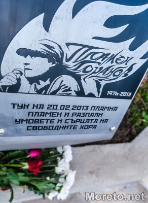 Знакът е поставен в градинката пред официалния вход на административната сграда, където през 2013 година младият мъж се самозапали в знак на граждански протест.