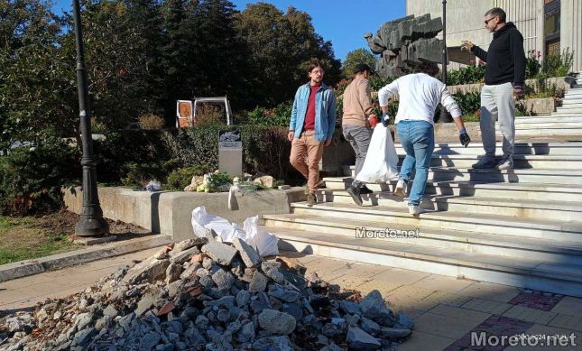 Според очевидци разчистването на купчината действително е извършено от група граждани, които са събрали камъните в чували и са ги извозили с бус.